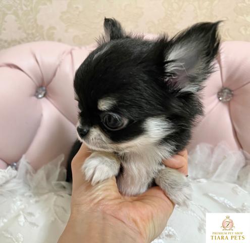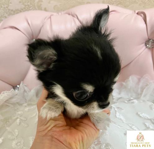 ロングコートチワワ ブラック&クリームの男の子